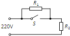 5、填空题 电饭锅工作时有二种状态:一种是锅内水烧干前的加热状态;另一种是水烧干后的保温状态.如图所示是电饭锅的电路图,R1是一个电阻,R2是一个加热用的电阻丝.请问: