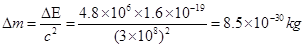 (2)根据爱因斯坦质能方程: