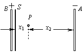 3、计算题  如图所示,金属极板AB间有电场强度的匀强电场,一带电量的小球开始时静止在电场中的点,靠近金属极板B处有一挡板S,小球与挡板S的距离,与板距离,小球的重力不计。在电场力作用下小球向左运动,与挡板S相碰后电量减少到碰前的k倍,已知,碰撞过程中小球的机械能没有损失。(已知:lg1.2=0.07918)