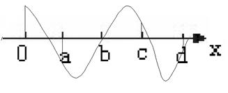 5、选择题 如图所示,O是波源,a、b、c、d是波传播方向上各质点的平衡位置,且Oa="ab=bc=cd=3" m,开始各质点均静止在平衡位置,t=0时刻波源O开始向上做简谐运动,振幅是0.1 m,波沿Ox 方向传播,波长是8 m,当O 点振动了一段时间、经过的路程是0.5 m时,有关各质点运动运动情况的描述正确的是