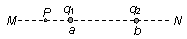 5、选择题 如图所示,在a、b两点上放置两个点电荷,它们的电荷量分别为q1、q2,MN是连接两点的直线,P是直线上的一点,下列哪种情况下P点的场强可能为零