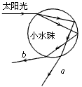 4、选择题 彩虹是悬浮于空气中的大量小水珠对阳光的色散造成的,如图所示为太阳光照射到空气中的一个小水珠发生全反射和色散的光路示意图,其中a、b为两束频率不同的单色光。对于这两束光,以下说法中正确的是( ? )