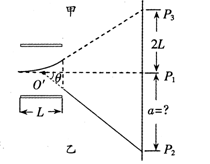(3)若两极板间只加题中所述的匀强磁场,电子在极板间的轨迹为一段圆弧,射出后打在P3点。测得圆弧半径为2L、P3与P1间距也为2L,求图乙中P1与P2点的间距a。