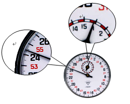 从短针看出时间大于30s而小于60s,因而时间为54.4s