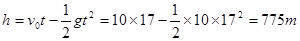 4、计算题  气球以10 m/s的速度匀速竖直上升,从气球上掉下一个物体,经17 s到达地面.求物体刚脱离气球时气球的高度.(g=10 m/s2).