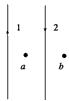 4、填空题 如图所示,同一平面内的两根平行放置的长直导线1和2,载有大小相同方向相反的电流,a、b两点与导线共面,a点在两导线中间且与两导线的距离为r,b在导线2的右侧,与导线2的距离也为r,现测得a点磁感应强度的大小变为B,则去掉导线1后,b点磁感应强度的大小变为___________,方向___________。