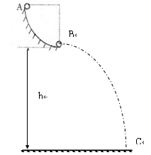 4、计算题 如图所示,在竖直平面内有一条1/4圆弧形轨道AB,其半径为1m,B点的切线方向恰好为水平方向.一个质量为2kg的小物体,从轨道顶端A点由静止开始沿轨道下滑,到达轨道末端B点时的速度为4m/s,然后做平抛运动,落到地面上的C点。若轨道距地面的高度h为5m(不计空气阻力,g=10m/s2),求: