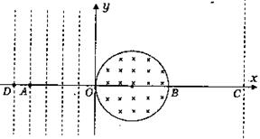 (2)若将圆形磁场区以O点为轴,整体逆时针将OB缓慢转过90°(与y轴重合),求