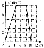 第一阶段:从0s到4s末,速度由0增大到8m/s,是一个匀加速运动阶段;
