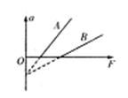 本题解析:对图象中直线在两轴上的截距的物理意义进行分析,便可获得解题突破。直线在纵轴上截距的物理意义是物理做自由落体运动时物体运动的加速度,即重力加速度g,故可以判定gA=gB。直线在横轴上的截距的物理意义是竖直向上的拉力F刚好等于物体的重力,则有mAgA<mBgB,即可得出mA<mB。故答案选A、D。