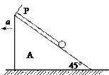2、实验题 如图所示,细线的一端固定于倾角为450的光滑楔形滑块A的顶端P处,细线的另一端拴一质量为m的小球。当滑块至少以加速度a="_________" 向左运动时,小球对滑块的压力等于零,当滑块以a=2g的加速度向左运动时,线中拉力T=__________。