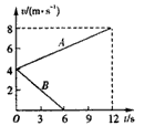 5、计算题 两个完全相同的物体A,B,质量均为m=0.8 kg,在同一粗糙水平面上以相同的初速度从同一位置开始运动。图中的两条直线分别表示物体A受到水平拉力F作用和物体B不受拉力作用的v-t图象,求: