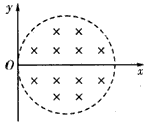 3、计算题 如图所示,质量为m,电荷量为e的电子从坐标原点O处沿xOy平面射入第一象限内,射入时的速度方向不同,但大小均为v0.现在某一区域内加一方向向外且垂直于xOy平面的匀强磁场,磁感应强度大小为B,若这些电子穿过磁场后都能垂直地射到与y轴平行的荧光屏MN上,求: