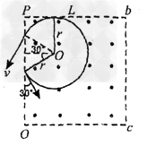 4、计算题 如图所示,虚线框abcd内为边长均为L的正形匀强电场和匀强磁场区域,电场强度的大小为E,方向向下,磁感应强度为B,方向垂直纸面向外,PQ为其分界线,现有一群质量为m,电荷量为-e的电子(重力不计)从PQ中点与PQ成30°角以不同的初速射入磁场,求: