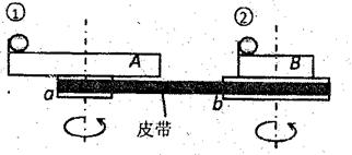 5、选择题 如图,在验证向心力公式的实验中,质量相同的钢球①放在A盘的边缘,钢球②放在B盘的边缘,A、B两盘的半径之比为2:1。a、b分别是与A盘、B盘同轴的轮,a轮、b轮半径之比为1:2,当a、b 两轮在同一皮带带动下匀速转动时,皮带不打滑,且钢球①、②相对盘静止,则钢球①、②所需之比为 ( )