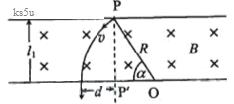 粒子在磁场中做匀速圆周运动,如图所示。由于粒子在分界线处的速度与分界线垂直。圆心O应在分界线上,OP长度即为粒子运动的圆弧的半径R.由几何关系得