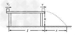 5、计算题  如图所示,质量为m的小物块在粗糙水平桌面上做直线运动,经距离l后以速度v飞离桌面,最终落在水平地面上。已知l=1.4m,v=3.0m/s,m=0.10kg,物块与桌面间的动摩擦因数μ=0.25,桌面高h=0.45m。不计空气阻力,重力加速度取10m/s2。求