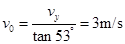 3、计算题  水平抛出的一个石子,经过0.4 s落到地面,落地时的速度方向跟水平方向的夹角是53°,(g取10 m/s2,sin53°=0.8,cos53°=0.6)求: