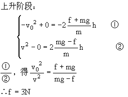 =10m/s竖直上抛,经时间t=1.8s后小球落回原处,速度变为v=5m/s,在此过程中空气阻力f的大小始终不变,求:空气阻力f的大小。(g 取10m/