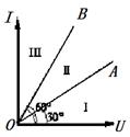 两电阻并联后总电阻的伏安曲线在__________内(填“区域I”、“区域II”或“区域III”内)