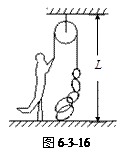 5、实验题 如图6-3-16所示,一小定滑轮距离地面高刚好为一链条的长度L,有一个人用轻绳跨过滑轮系住链条的一端,用力将全部堆放在地面上的链条向上拉动,当链条有L/4长度跨过滑轮时,人不再用力拉绳,这时链条继续运动,最后刚好静止在滑轮上,不计滑轮的摩擦,链条的质量为m,则人的拉力做功为?.
