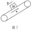 1、选择题 如图7所示,物块M在静止的传送带上以速度v匀速下滑时,传送带突然启动,方向如图中箭头所示,若传送带的速度大小也为v,则传送带启动后( )