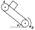 4、计算题 如图所示,A、B两轮间距l=3.25 m,套有传送带,传送带与水平面成θ=30°角,轮子转动方向如图所示,使传送带始终以2 m/s的速度运行,将一物体无初速度地放到A轮处的传送带上,物体与传送带间的动摩擦因数