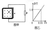 2、计算题 一个正方形导线圈边长a=0.2m,共有N=100匝,其总电阻r=4Ω,线圈与阻值R=16Ω的外电阻连成闭合回路,线圈所在区域存在着匀强磁场,磁场方向垂直线圈所在平面,如图甲所示,磁场的大小随时间变化如图乙所示,求: