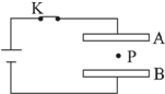 2、选择题 如图所示,平行板电容器AB内部原有带电微粒P处于静止状态.现保持极板A和B的正对面积不变,使极板A上移一小段距离后,微粒P的运动情况是( )