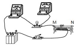 ② 实验中某同学连接实验电路如图所示,请你不要改动已连接的导线,在下面的实物连接图中把还需要连接的导线补上。闭合开关前,应使变阻器滑片放在最     (填“M”或“N”)端.
