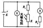 1、选择题 在如图所示的电路中,E为内阻不可忽略的电源,R1、R2为定值电阻,R为光敏电阻,无光照射时,外电路的总电阻比电源的内阻小;当有光照射在光敏电阻上,且照射光的强度逐渐增大时,下列说法正确的是