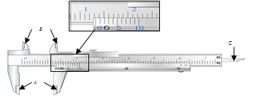 2、实验题 (1)(9分) ① 游标卡尺的组成如图甲所示,要测一钢管的内径(图乙),必须用其中的 进行测量(填写A或B或C)。甲图的读数 cm