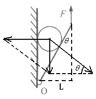 2、选择题 如图所示,质量均匀的球夹在光滑竖直墙面和光滑轻板之间,轻板可绕其L端的水平轴O自由转动。在轻板上端用竖直向上的拉力F提着轻板,使其缓慢放下,直到轻板呈水平之前,F的大小以及F对于轴O的力矩M的大小变化情况是(?)
