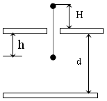 1、计算题 如图所示一质量为m带电量为+q的带电液滴从水平放置的平行金属板上方H高度处自由落下,从上板的缺口进入两板间电场,电场强度为E,方向竖直向上。若Eq>mg,试求液滴落入电场中所能达到的最大位移h?