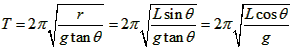 5、计算题 在如图所示的圆锥摆中,已知绳子长度为L,绳子转动过程中与竖直方向的夹角为θ,求小球做匀速圆周运动的周期。