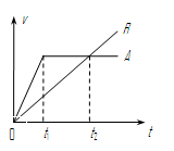 4、选择题 A、B两个物体从同一地点,向某方向作直线运动的v-t图象如图,由图象可知(?)
