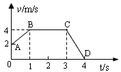 3、选择题 如图所示为一辆玩具汽车运动的v-t图象,对线段AB、BC、CD所表示的运动,下列说法正确的是