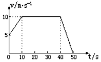 1、填空题 如图所示,为某汽车做直线运动的v-t图象,由图可知,汽车在前10s内的位移为___________m;在10s末到40s末做___________运动;在45s末的加速度为__________m/s2,在整个50s内的平均速度为__________m/s。若汽车水平地板上平放一质量M=20kg的木箱,与地板间摩擦因数为0.6,且汽车运动过程中木箱在水平方向只可能受到摩擦力作用,则木箱在0到10s末受摩擦力为____________N。