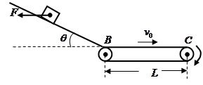 。今将水平力撤去,当滑块滑到传送带右端C时,恰好与传送带速度相同。已知滑块与传送带间的动摩擦因数为