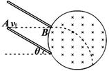 4、计算题 如图,平行金属板倾斜放置,AB长度为L,金属板与水平方向的夹角为θ,一电荷量为-q、质量为m的带电小球以水平速度v0进入电场,且做直线运动,到达B点。离开电场后,进入如下图所示的电磁场(图中电场没有画出)区域做匀速圆周运动,并竖直向下穿出电磁场,磁感应强度为B。试求: