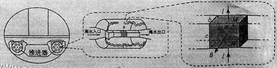 (1)求一个直线通道推进器内磁场对通电海水的作用力大小,并判断其方向。