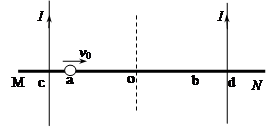 3、选择题 如图所示,两根长直导线竖直平行固定放置,且与水平固定放置的光滑绝缘杆MN分别交于c、d两点,点o是cd的中点,杆MN上a、b两点关于o点对称。两导线均通有大小相等、方向向上的电流,已知长直导线在周围某点产生磁场的磁感应强度与电流成正比、与该点到导线的距离成反比。一带正电的小球穿在杆上,以初速度v0从a点出发沿杆运动到b点。在a、b、o三点杆对小球的支持力大小分别为Fa、Fb、Fo。下列说法可能正确的是(?)