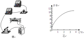 ③该同学根据实验数据,计算并描绘出R-U的图象如图乙所示。由图象可知,此灯泡在不工作时,灯丝的电阻为_________Ω;