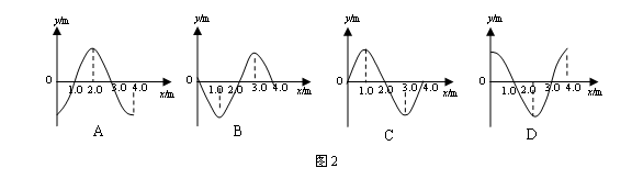 2、选择题 一列简谐波沿x轴正方向传播,在t=0时波形如图1所示,已知波速度为10m/s。则t=0.1s时正确的波形应是图2中的?