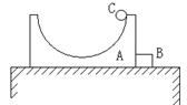 5、选择题 如图所示,A、B两物体彼此接触静止于光滑的水平桌面上,物体A的上表面是半径为R的光滑圆形轨道,物体C由静止开始从A上圆形轨道的右侧最高点下滑,则有:(? )