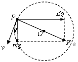 参考答案:解:(1)因带电小球A恰能做完整的圆周运动,则小球通过复合场中的最高点P的向心力由小球A的重力和电场力的合力提供,由圆周运动知识,此时速度为最小速度设此时的速度大小为v,方向与重力的方向的夹角为θ