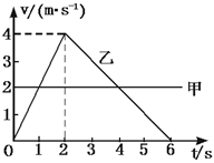 3、选择题 如图为甲、乙两个质点同时、同地向同一方向运动的速度图象,由图可知