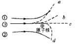 5、其他  卢瑟福通过___________实验,发现了原子中间有一个很小的核,并由此提出了原子的核式结构模型。下面平面示意图中的四条线表示α粒子运动的可能轨迹,在图中完成中间两条α粒子的运动轨迹。