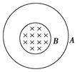 3、选择题 如图所示,A、B两闭合线圈为同样导线绕成,A有10匝,B有20匝,两圆线圈半径之比为2∶1.均匀磁场只分布在B线圈内.当磁场随时间均匀减弱时 ( ).