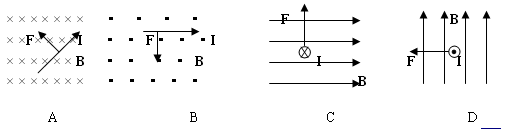 5、选择题  如下图所示,表示磁场对直线电流的作用,其中不正确的是(    )